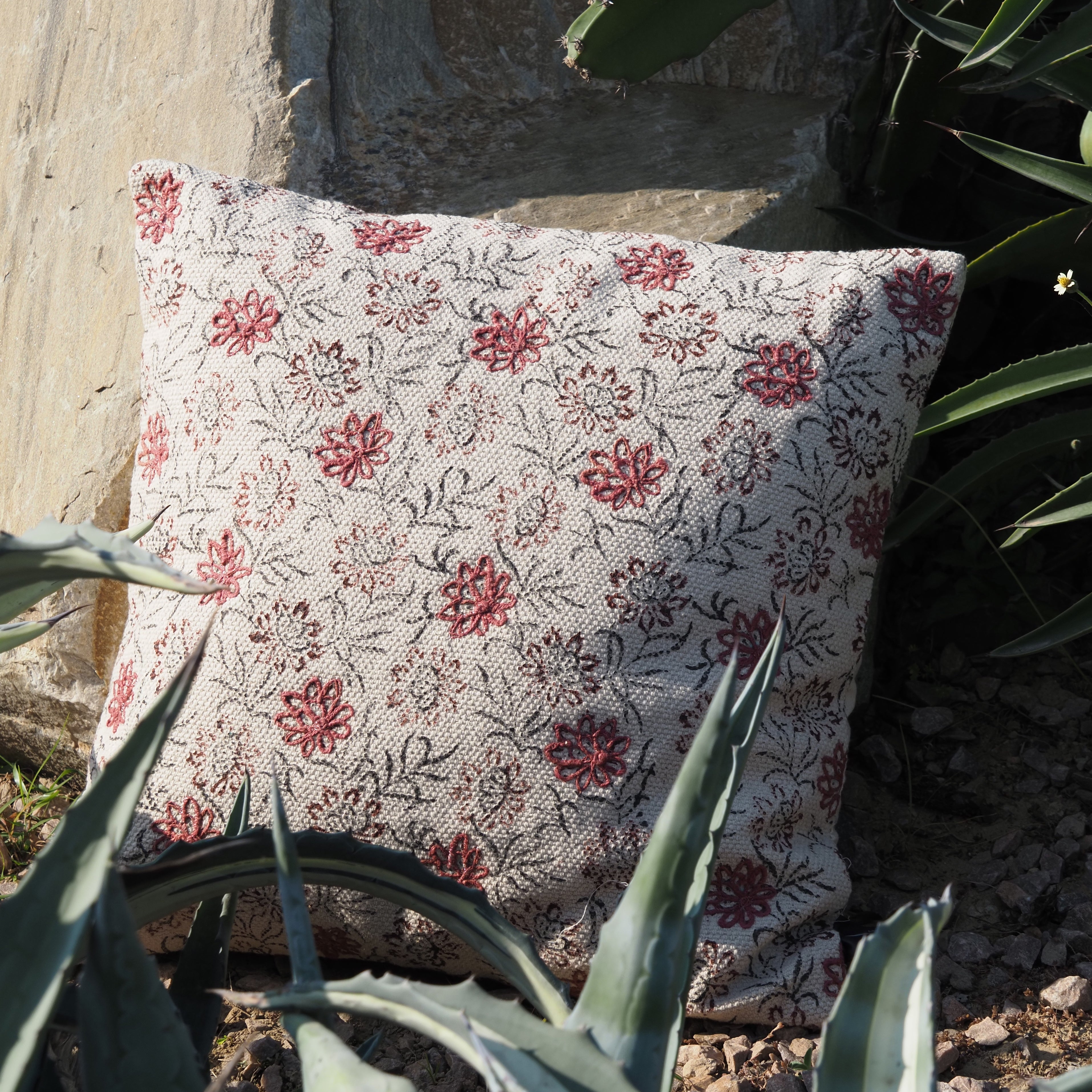 Block Print with Embroidery Pillow
